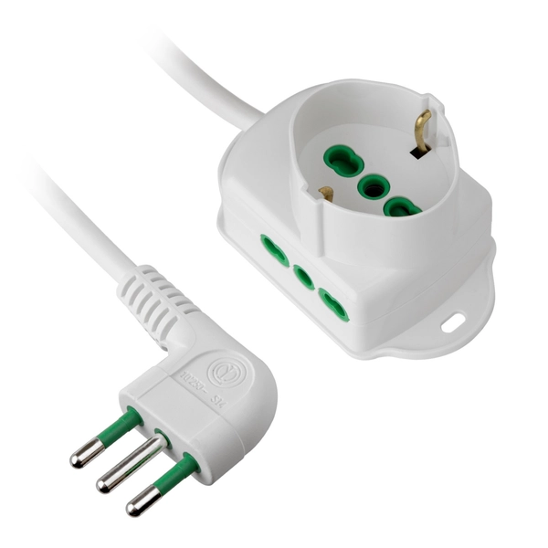 - ADATTATORE TRIPLO CON UNA PRESA ITALO/TEDESCA E DUE PRESE ITALIANE LATERALI, CAVO CON SPINA ITALIANA