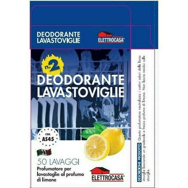 | Descrizione del prodotto | Deodorante lavastoviglie. Neutralizza i cattivi odori delle lavastoviglie lasciando un gradevole e fresco profumo di limone. Non lascia residui sulle stoviglie. |