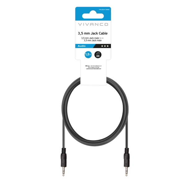 VIVANCO Cavo audio stereo con jack 3,5 mm maschio - maschio, colore nero, lungo 1,2 m