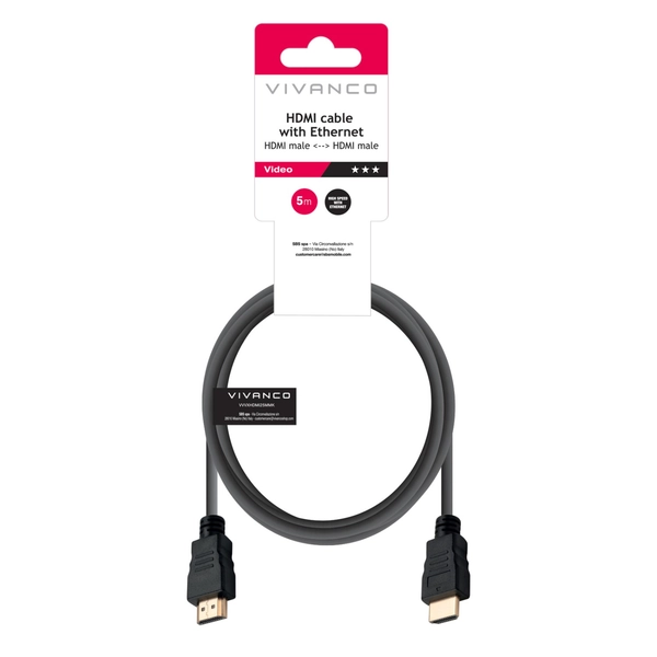 VIVANCO Cavo hdmi v. 1.4 alta velocità, con ethernet, connettori maschio - maschio, colore nero, lungo 5 metri