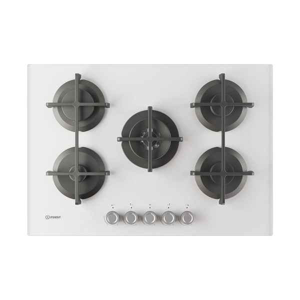 INDESIT Ing 72t/wh 1 piano gas vetro bianco 75cm 5 fuochi bruciatore doppia corona griglie in ghisa lavabili in lavastoviglie