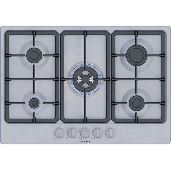 BOSCH Pgq7b5k90 serie 4 piano cottura a gas 75 cm 5 fuochi acciaio inox
