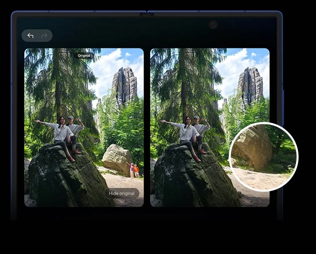 Cogli i particolari più fini di ogni scena e lascia che il nostro ProVisual Engine di nuova generazione faccia il resto. Migliora il colore e i dettagli per una chiarezza che esalta i toni della pelle e le texture. In seguito, è possibile aprire il telefono per vederli sul display di grandi dimensioni, immergendoti nei tuoi ricordi più belli.1, 13